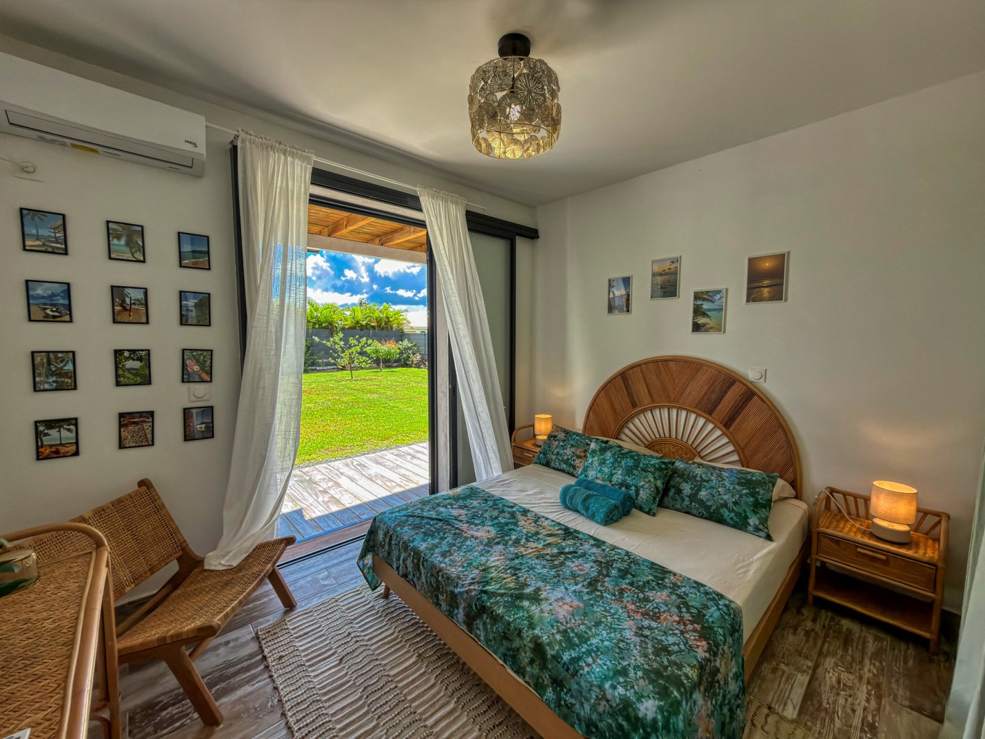 Climatisation : oui dans chaque chambre. Deux ventilateurs sur pied sont mis à disposition dans le salon équipé d’un canapé lit.