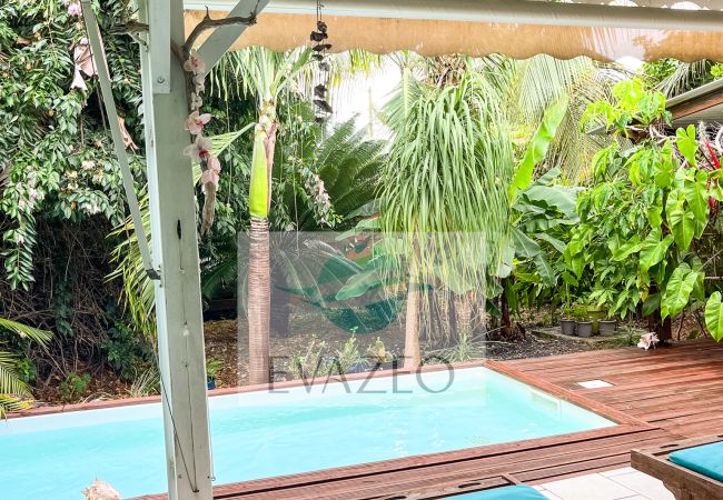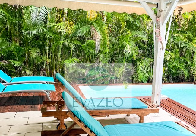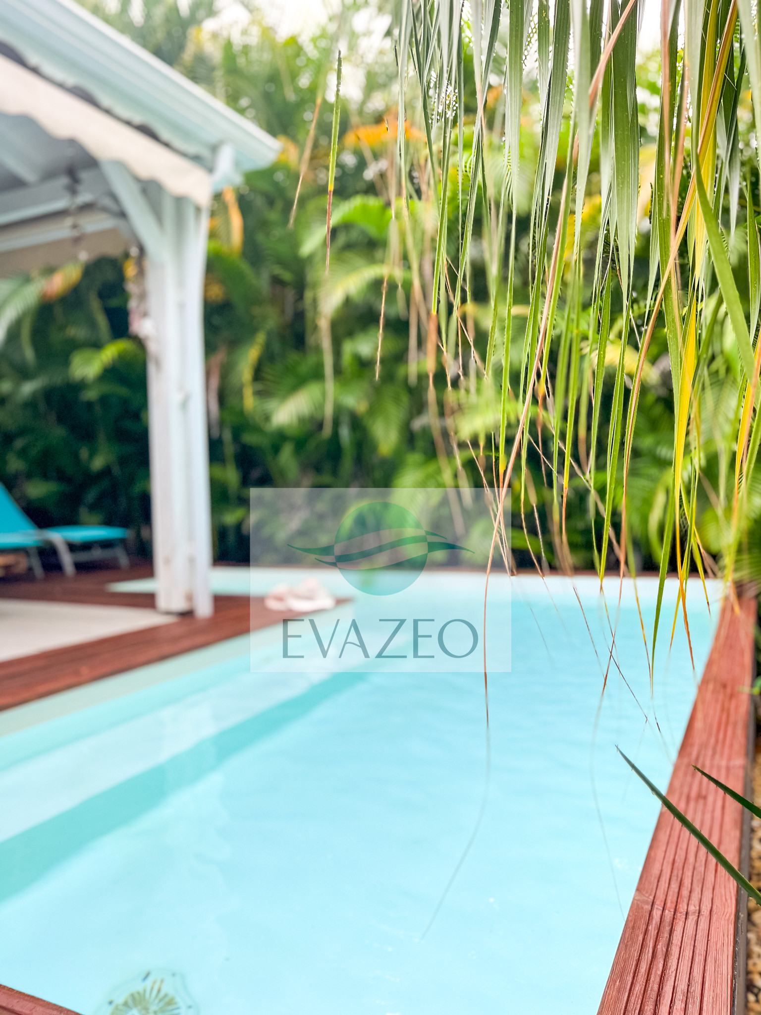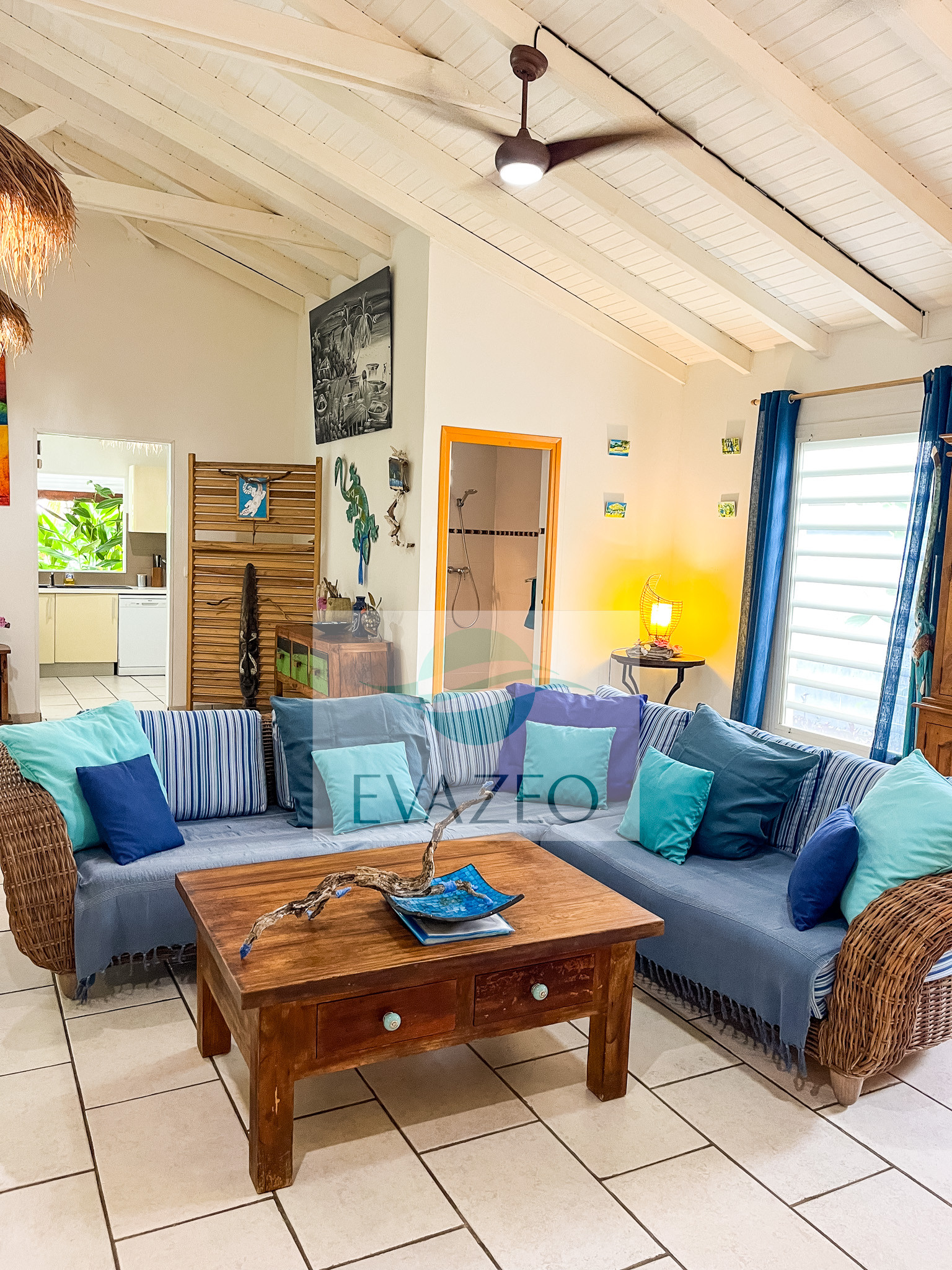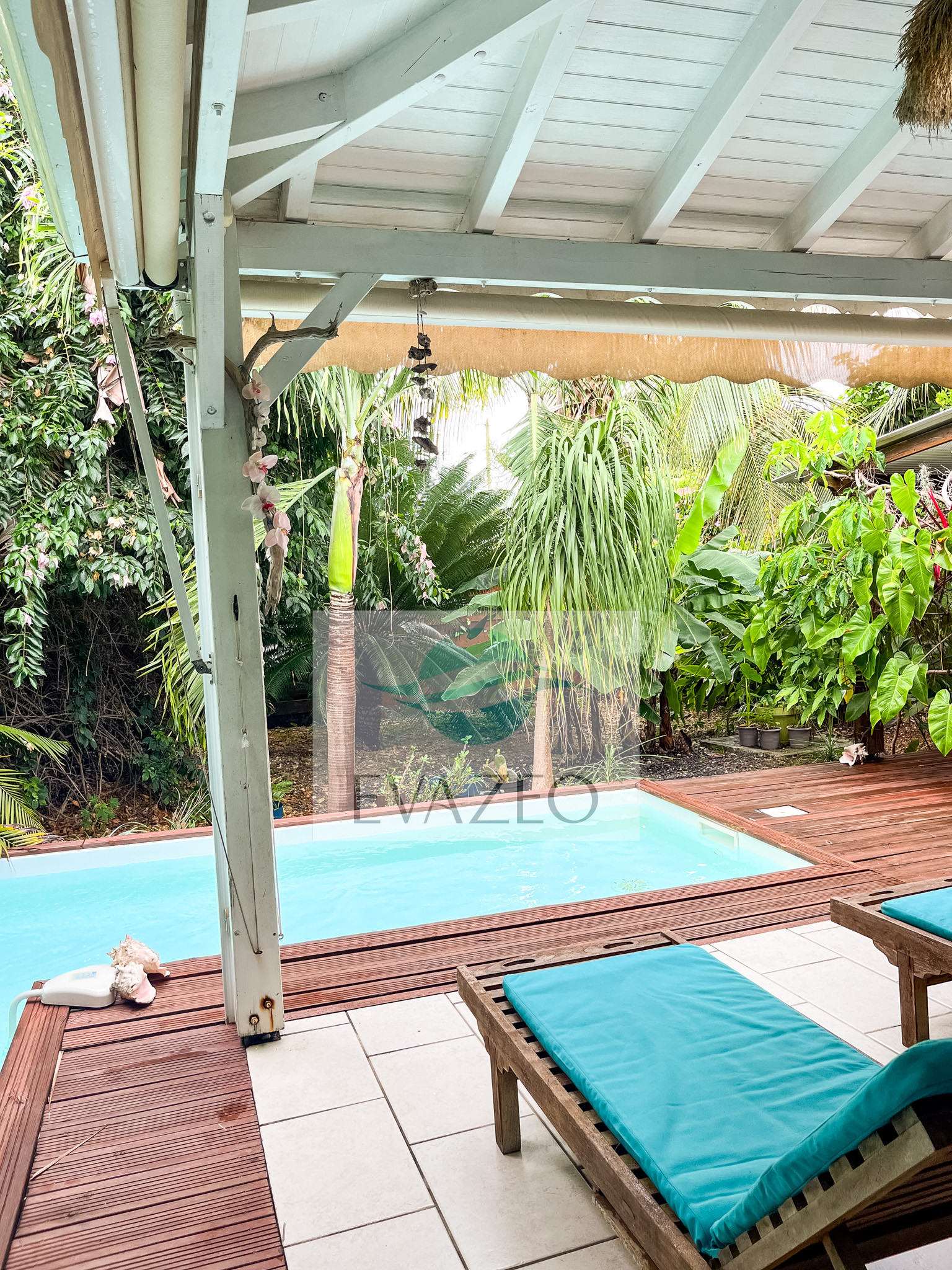 Très jolie maison, classée meublé de tourisme 4****, idéalement située sur la commune de Saint François à proximité de la plage et du centre ville. Cette villa, nichée dans la verdure, a été équipée et décorée afin d'apporter à ses occupants une ambiance chaleureuse et confortable. Le beau jardin tropical, très au calme, ainsi que la piscine et le barbecue vous garantiront dépaysement, intimité et convivialité en famille ou entre amis.