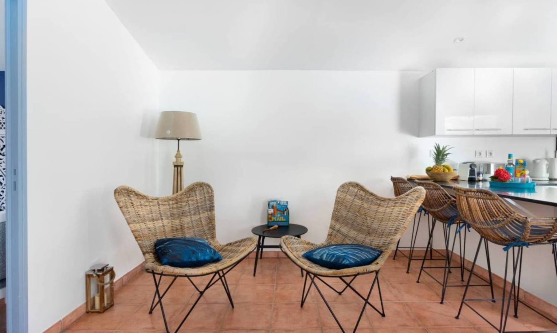 Agencement de la villa : la villa compte 3 chambres climatisées (2 avec des lits double de 160 cm, 1 avec 2 lits individuels de 90 cm rapprochables), 2 salles d'eau avec wc (1 attenante à la suite parentale et 1 indépendante), séjour, cuisine américaine équipée, terrasse et piscine privée.