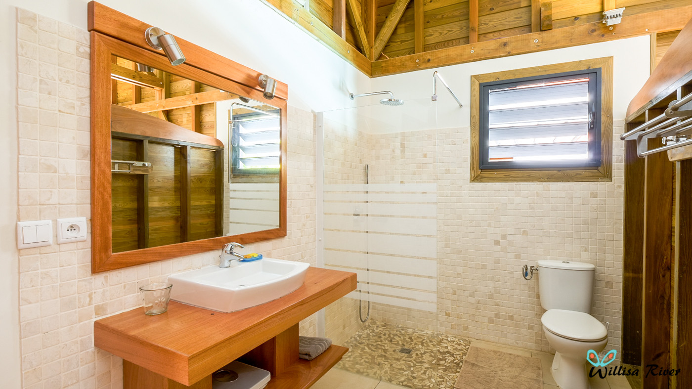 Bienvenue au Domaine Willisa River, un havre de paix situé à Bouillante, sur la côte ouest de la Guadeloupe. Cet ensemble immobilier unique, composé de deux villas et d’un bungalow, se trouve dans un cadre résidentiel calme, entouré de verdure, avec vue sur la rivière Bourceau et les montagnes.